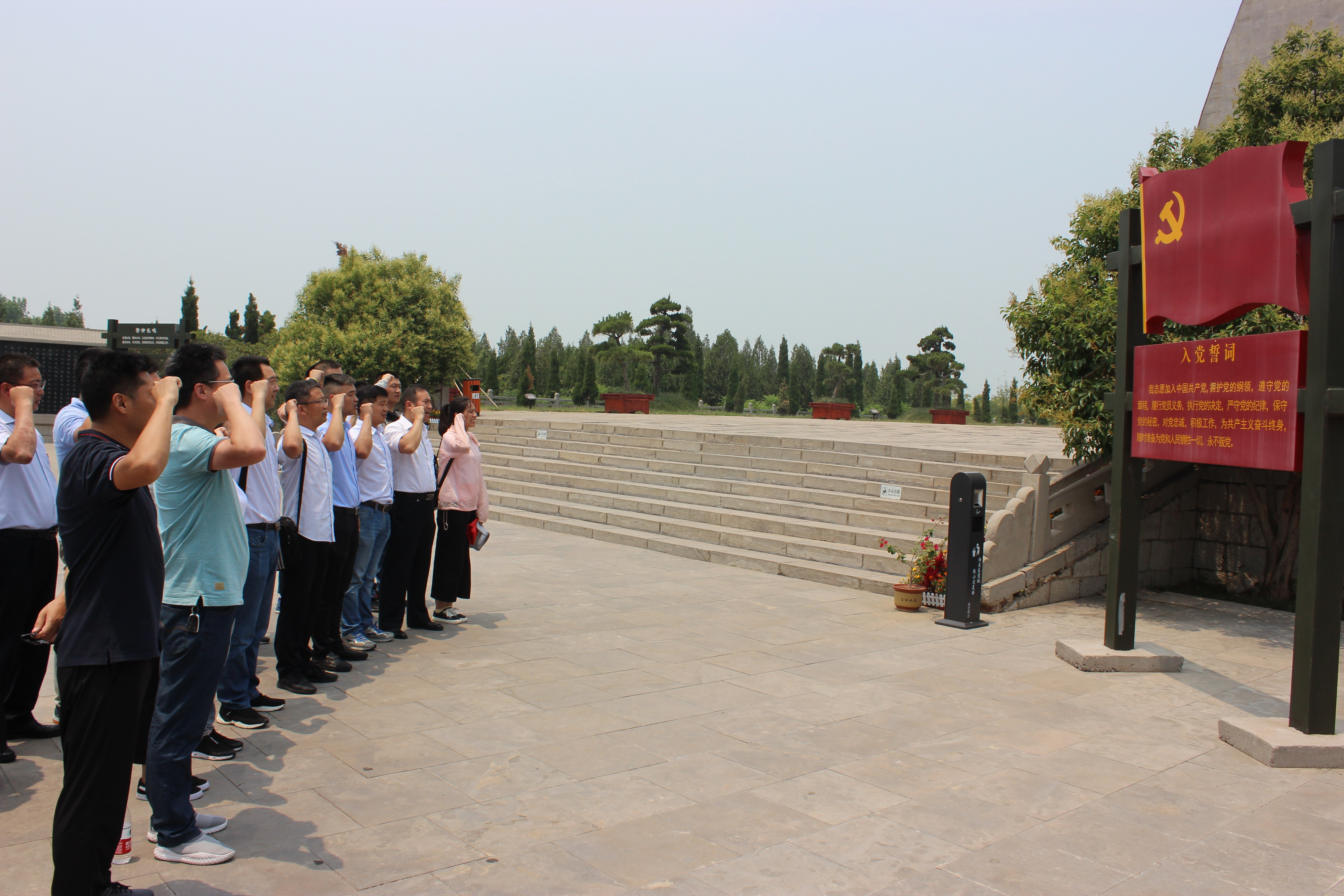 在鐵道游擊隊紀念碑前,黨員們面對鮮紅的黨旗,莊嚴的舉起右手,重溫入黨誓詞。我志愿加入中國共產黨,擁護黨的綱領,遵守黨的章程,履行黨員義務……隨時準備為黨和人民犧牲一切,永不叛黨。一聲聲鏗鏘有力的誓言響徹微山湖鐵道游擊隊紀念園,表達了黨員們對黨的無限忠誠,對鐵道游擊隊英雄們的崇高敬意。
