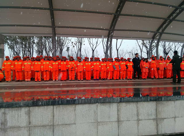 2月28日上午,雪花飄飄,建發(fā)公司市政物業(yè)部組織2015年度環(huán)衛(wèi)保潔作業(yè)人員進(jìn)行崗前培訓(xùn)和安全技術(shù)交底工作。新招錄的環(huán)衛(wèi)工人統(tǒng)一穿著嶄新的工服,推著嶄新的保潔三輪車,列隊(duì)集結(jié),整裝待發(fā)。