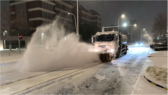 為確保城市主干道及橋梁暢通,建發(fā)公司緊抓夜間作業(yè)窗口,秉持“人歇車不歇”原則,調(diào)配精良設(shè)備與人員,對易結(jié)冰的橋面及主干道進行高強度清除作業(yè)。作業(yè)人員利用后半夜車流較少的時機,集中操作雪滾車、撒布機等設(shè)備,并同步在關(guān)鍵路口鋪設(shè)防滑墊。截至20日17時,累計投入各類機械16臺、作業(yè)人員320名,撒布融雪劑60噸,有效保障了主要道路的安全通行。