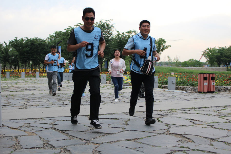 烈日炎炎,隨著“東方不敗、永遠(yuǎn)不敗”和 “屠龍隊(duì)、專治不敗”口號吶喊,兩支斗志昂揚(yáng)的隊(duì)伍踏上三臺(tái)山尋寶征途。在指導(dǎo)教官的監(jiān)督下,按照尋寶秘籍的指引,隊(duì)員們?nèi)翰呷毫Γ群笸瓿伞凹w跳躍合拍”、“征集十二個(gè)陌生人合影”、“募集五十元”等寓意深刻的團(tuán)隊(duì)合作任務(wù)。尋寶全程7公里,在到達(dá)終點(diǎn)前路程中,隊(duì)員們體能已經(jīng)達(dá)到極限,但沒有一個(gè)人掉隊(duì),大家相互扶持,沖刺到了終點(diǎn)。